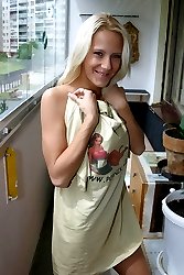 Adorable girlfriend exposing her naked sexy body in the balcony